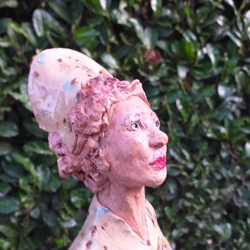 De laatste tijd geraken de beelden meer en meer verweven met het dagelijks leven = mensen rondom mij, foto's van prachtige koppen ,schilderijen die mij aanspreken...de beeldjes die ik nu maak voelen minder strak, meer speels aan.